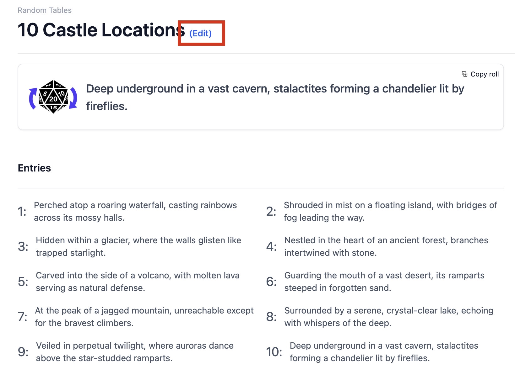 Once saved, your random table can be rolled on its own or reused inside a Batch Roll.
